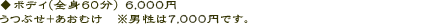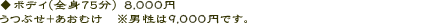 女性は、腹部、ウエスト、太もも、ふくらはぎ、二の腕、背中の施術が出来ます。